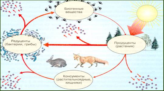 Жизнь на Земле продолжается уже около 4 млрд. лет, не прерываясь именно потому, что она протекает в системе биологических круговоротов вещества. Основу этого составляет фотосинтез растений и пищевые связи организмов в биогеоценозах. Однако биологический круговорот вещества требует постоянных затрат энергии. В отличие от химических элементов, многократно вовлекаемых в живые тела, энергия солнечных лучей, задержанная зелеными растениями, не может использоваться организмами бесконечно.