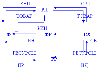 Финансовая система характеризуется не только составом входящих в нее частей, но и потоками финансовых ресурсов (финансовыми потоками), связывающими главных агентов финансовых отношений. Такими агентами следует считать государственный бюджет, предприятия и предпринимательские структуры, домашние хозяйства. Кроме того, финансовые потоки связывают этих агентов с кредитной системой и с иностранными государствами в лице их правительств, фирм, фондов, банков. В результате возникает система взаимных финансовых связей и потоков, в упрощенном виде изображенная на рисунке 2.