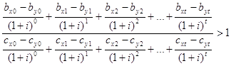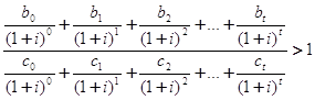 Критерий отношения прибыли и издержек может быть полезен тогда, когда принимается решение об инвестициях в те проекты, для которых отношение текущей стоимости доходов к текущей стоимости издержек больше единицы. Уравнение этого критерия имеет вид