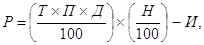 где Р – экономический эффект рекламы, руб.; Т – среднедневной товарооборот в дорекламный период, руб.; П – прирост среднедневного товарооборота в рекламной и послерекламный периоды, %; Д – число дней учета товарооборота в рекламный и послерекламный период; Н – торговая скидка, %; И – расходы на рекламу и рекламную кампанию в изучаемом торговой организацией периоде, руб.