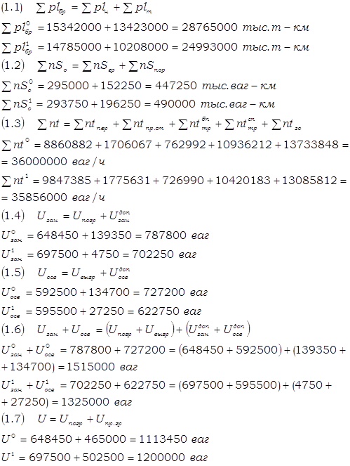 В соответствии с ТАБЛИЦЕЙ 1.1 необходимо проверить правильность расчётов объёмных показателей грузовых вагонов рабочего парка по следующим формулам взаимосвязи: