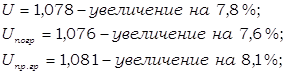 На увеличение в отчётном периоде по сравнению с базисным общих вагоно-километров на 9,6% одновременно повлияло и уменьшение вагоно-километров груженых вагонов на 0,4%, и значительное увеличения вагоно-километров порожних вагонов на 28,9%.