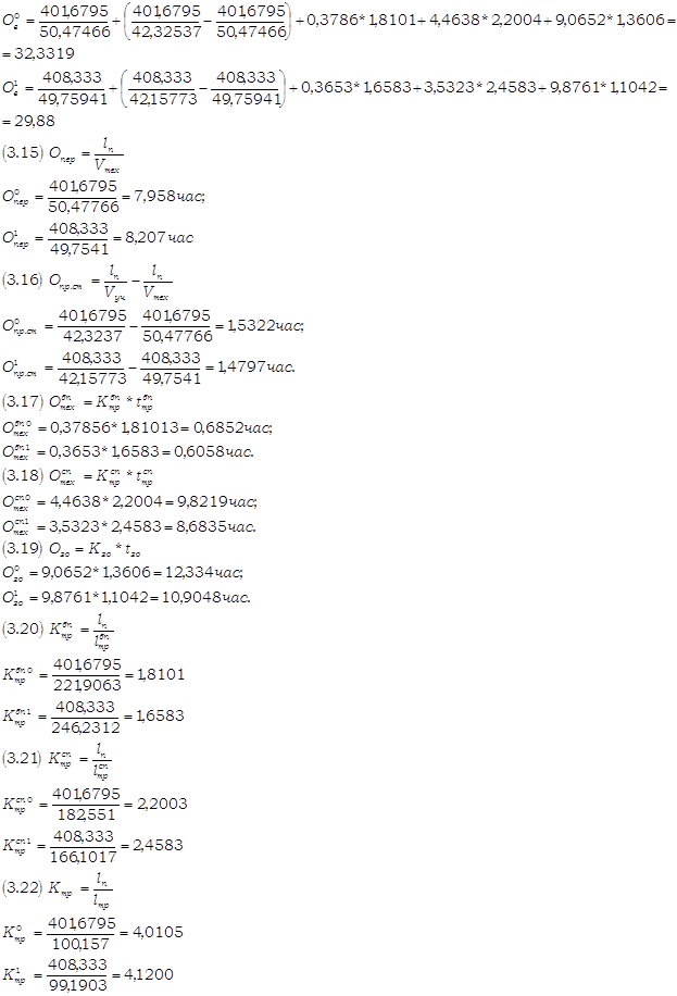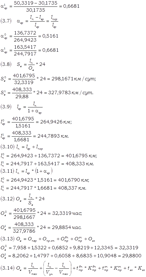В соответствии с ТАБЛИЦЕЙ 3.1 необходимо проверить правильность расчёта качественных показателей грузовых вагонов рабочего парка по следующим формулам взаимосвязи:
