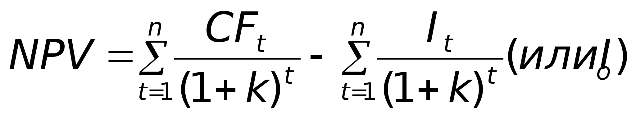 1. Метод NPV- определение разницы между суммой дисконтированных денежных поступлений от реализации проекта и дисконтированной текущей стоимости всех затрат.