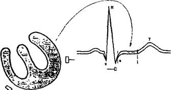 Таким образом, генез зубцов комплекса QRS в I и III отведениях отражает различные этапы возбуждения желудочков: в начале - возбуждение межжелудочковой перегородки (зубцы q1 и rIII), затем - деполяризацию верхушек и стенок желудочков, преимущественно левого желудочка (регистрируется основной зубец комплекса QRS, например, зубец R1) и, наконец, возбуждение базальных отделов желудочков (зубец SI,III).