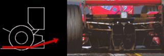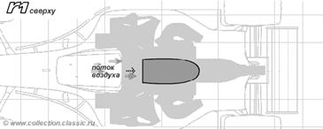 Боковые дефлекторы выглядят несколько лишними, но на самом деле являются важной частью аэродинамического пакета. Они расположены в тех местах, где турбулентность воздушного потока максимальна и может снизить аэродинамическую эффективность болида. Стабилизаторы рассчитаны так, чтобы направлять воздушный поток под болид для создания там разрежения и тем самым - увеличения прижимной силы (см. Рис. 2.12).
