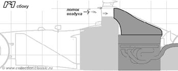 Таким образом, с помощью боковых дефлекторов достигается две цели: снижение лобового сопротивления и более эффективное охлаждение. Устанавливаются они, как правило, между передними колесами и боковыми понтами болида (см. Рис. 2.11).