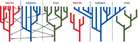 Но генетически мы все вышли из одного гнезда, причём сравнительно недавно в масштабах эволюции (рис. 6).