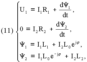 Основой для математического описания АД служат уравнения, составленные в фазовых координатах. Особенностью АД является совокупность магнитосвязанных цепей с коэффициентами само- и взаимоиндукции, периодически изменяющимися в функции угла поворота ротора относительно статора. В зависимости от степени насыщения магнитной системы машины, эти коэффиценты могут зависеть еще и от токов во всех обмотках. Уравнения могут быть составлены либо в трехфазной системе координат, либо в двухфазной для обобщенной машины. При записи уравнений в фазовых координатах получают систему дифференциальных уравнений высокого порядка ( в трехфазной системе координат число уравнений равно 14) с переменными коэффициентами. Пользоваться такой системой для исследования электромеханических процессов, происходящих в АД не представляется возможным в связи с громоздкостью, наличием переменных коэффициетов, нелинейностью. Дальнейшее упрощение и преобразование исходной системы уравнений основывается на следующем общем методе. При этом уравнения в фазовых координатах преобразуются к уравнениям, выраженным через обобщенные (результирующие) векторы, вводится система относительных единиц для токов, напряжений, потокосцеплений, скоростей вращения, частот, моментов, активных, индуктивных сопротивлений. Введение системы относительных единиц упрощает вид уравнений, а выражение переменных через результирующие векторы приводит к виду дифференциальных уравнений, при котором коэффициенты дифференциальных уравнений ненасыщенной машины являются постоянными величинами. Для насыщенной машины необходимо вводить зависимость величин этих коэффициентов от магнитного состояния машины.