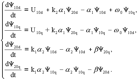 После указанных преобразований получают систему дифференциальных уравнений шестого порядка с постоянными коэффициентами, что значительно упрощает описание АД и делает возможным использование этой системы для ииследования электромеханических процессов, протекающих в АД. Дальнейшее преобразование полученной системы уравнений сводится к переводу векторов, входящих в уравнение, в различные системы координат (в зависимости от цели решаемой задачи).