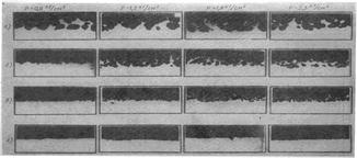 Согласно выведенной формуле глубина проникновения пригарного слоя в форму обратно пропорциональна корню квадратному из вязкости. Достоверных непосредственных опытов в подтверждение этого положения проведено не было. Косвенно влияние вязкости видно из табл.5[2], связывающей увеличение жидкотекучести с увеличением глубины проникновения в форму пригарного слоя.