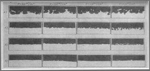 На образцах из углеродистой стали 30Л и малолегированной стали 20ГСЛ при использовании смесей I, II, III, IV резкой разницы в величине механического пригара при изменении давления металла в пределах 0,6 - 2,5 кГ/см² обнаружено не было.
