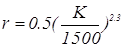 Допуская, что связь между газопроницаемостью К и диаметром зерна 2r выражается формулой:
