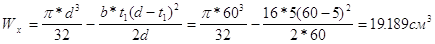 Где S,Wx - площадь поперечного сечения и момент сопротивления вала в опасном сечении.