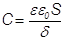 Для плоского конденсатора электрическая емкость определяется выражением: