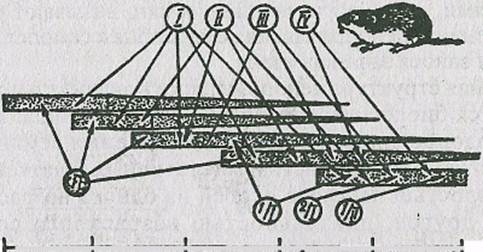 Рис. 4 Возрастная структура популяции полевки-экономки на Крайнем Севере (по С.С. Шварцу, 1980